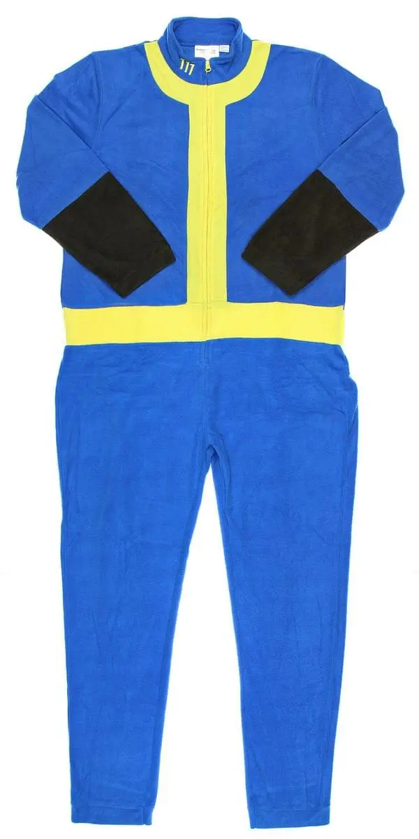 Lounge in the comfort of your fallout shelter, or home, in this Vault 111 Men’s Union Suit! Based on the outfit worn by vault dwellers in the hit video game Fallout 4, this comfy 100% Polyester one piece pajama features a blue and yellow color scheme along with the number 111 on the back. Lounge wear has a zip up closure and ends at the ankles. Standard men’s sizing.