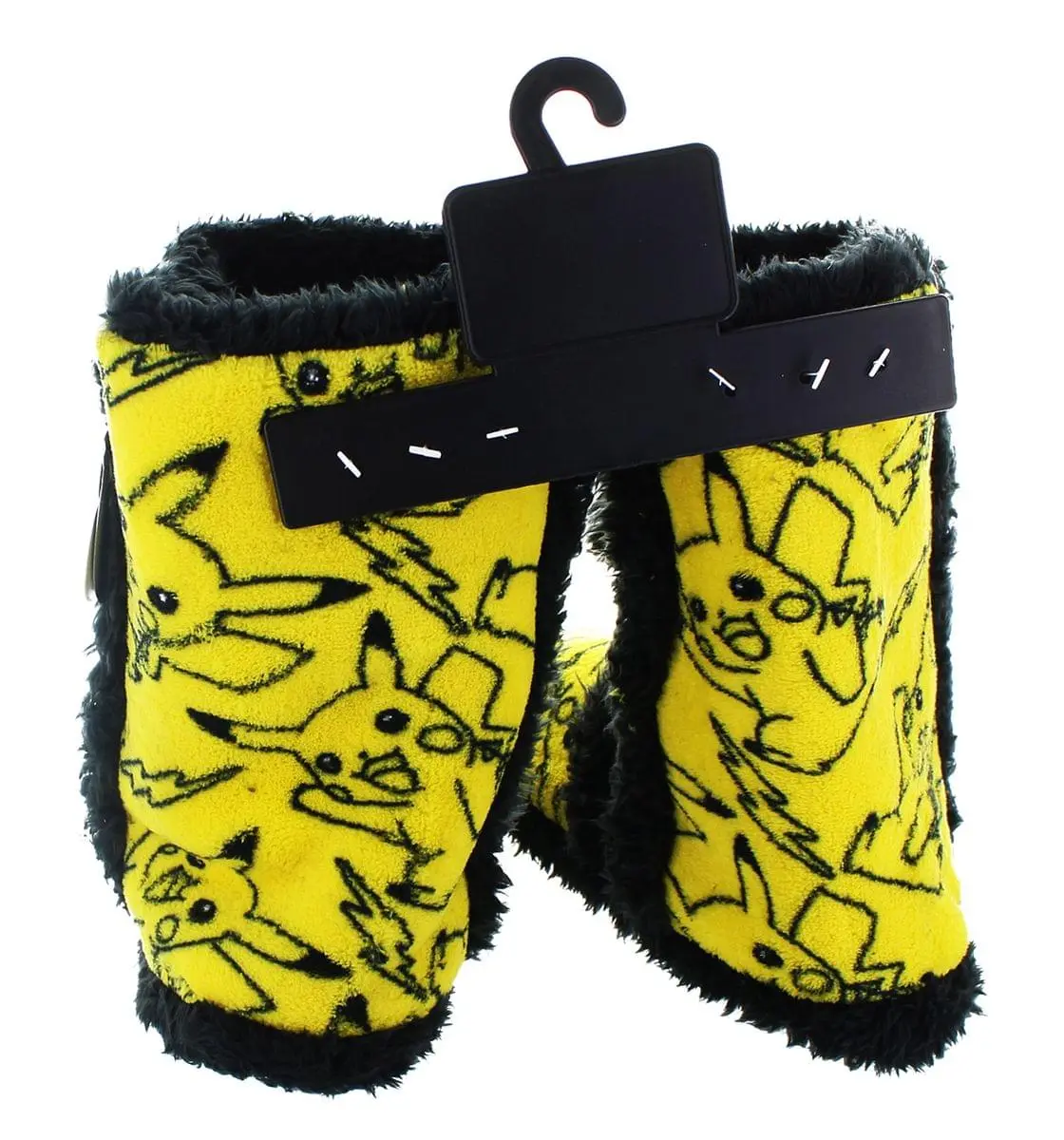I choose you, Pikachu! These fun women’s boot slippers feature Pokémon’s adorable yellow mascot as an all-over print topped with two black pom poms. Boot slippers are fur lined and feature memory foam insoles for ultimate comfort. Tough rubber soles ensure a safe grip. Extremely comfortable and snug fitting! Available in Small, Medium or Large. 100% official Nintendo licensed Pokémon Merchandise.
