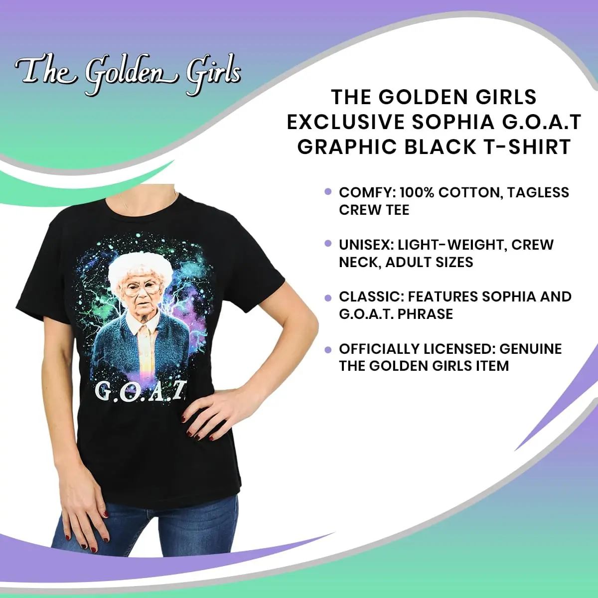 For Sophia fans near and far, your favorite iconic character is now immortalized on this comfortable, durable graphic tee!