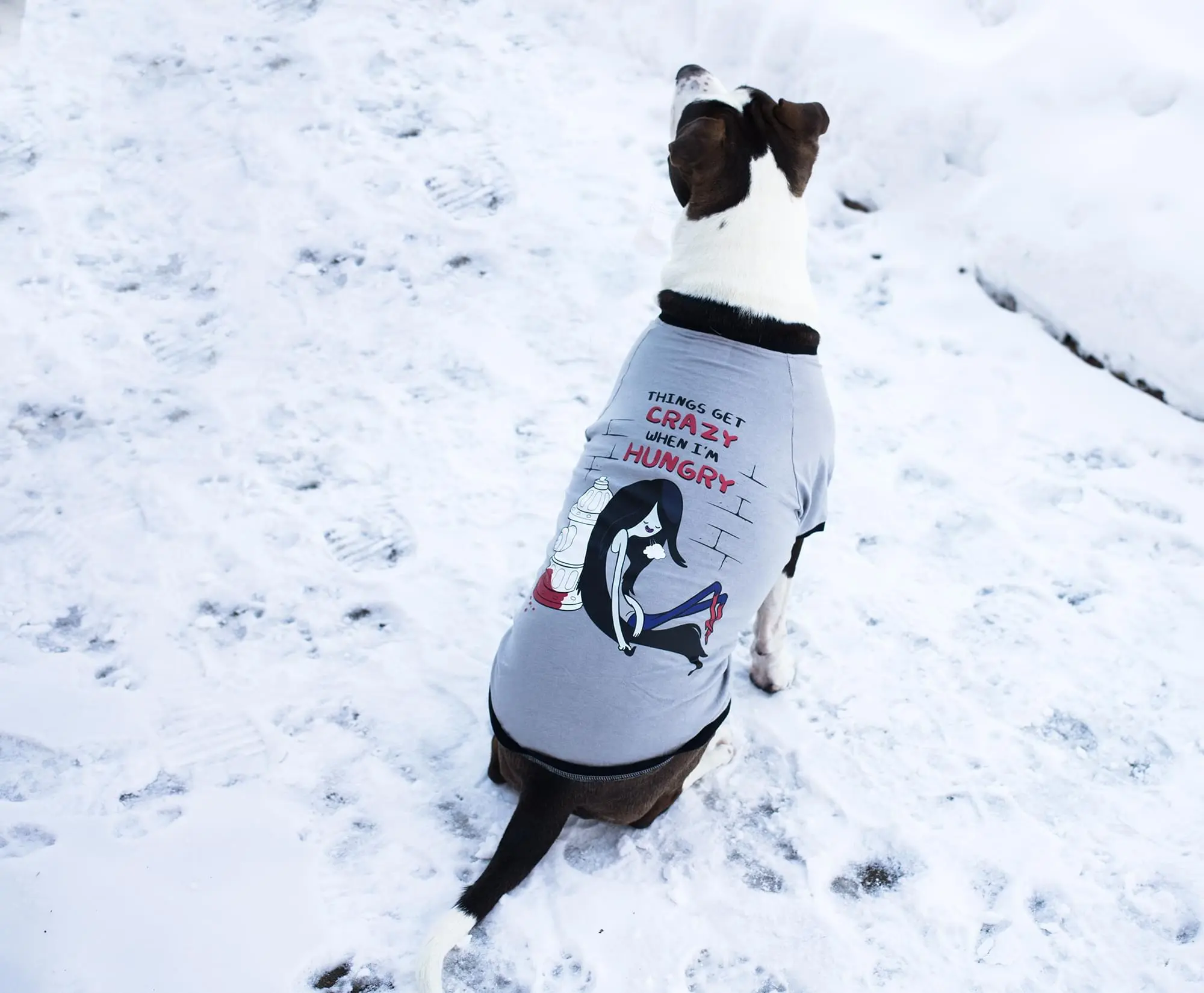 What’s the time? Adventure Time for your pet! The Adventure Time Pet Collection from A Crowded Coop was made with the cartoon-lover in mind! This fun shirt features vampire Marceline sitting against a fire hydrant with the text “Things Get Crazy When I’m Hungry”. Small: girth- 15”-18”, length – 8.5” – 9”; Medium: girth – 17” – 20”, length – 13”- 13.5”; Large: girth – 20”-23”, length – 16”-16.5”; X-Large: girth – 22” – 25”, Length – 19.”-19.5”; XX-Large: girth – 25”- 28”, length – 22”-22.5”. Officially licensed.