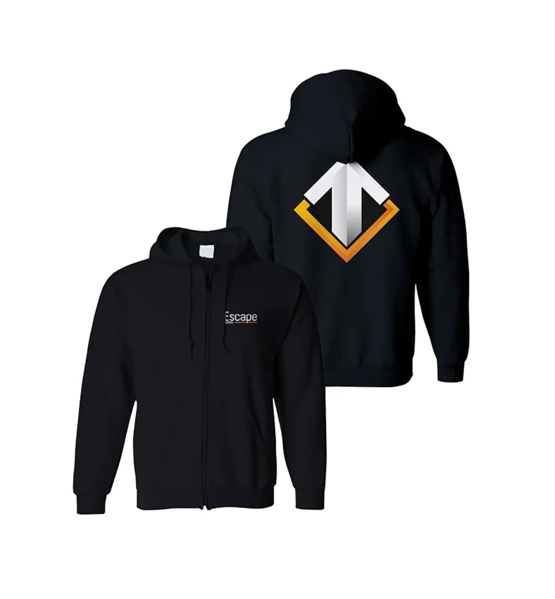 Wear your love of the premier e-sports organization Escaper Gaming with this stylish hoodie! Black zip-up hoodie features a small “Escape Gaming” logo print on the front and a large Escape Gaming logo on the back. The cotton / polyester blend (70/30) ensures a comfortable fit. Men’s sizes. Game on! Officially licensed.