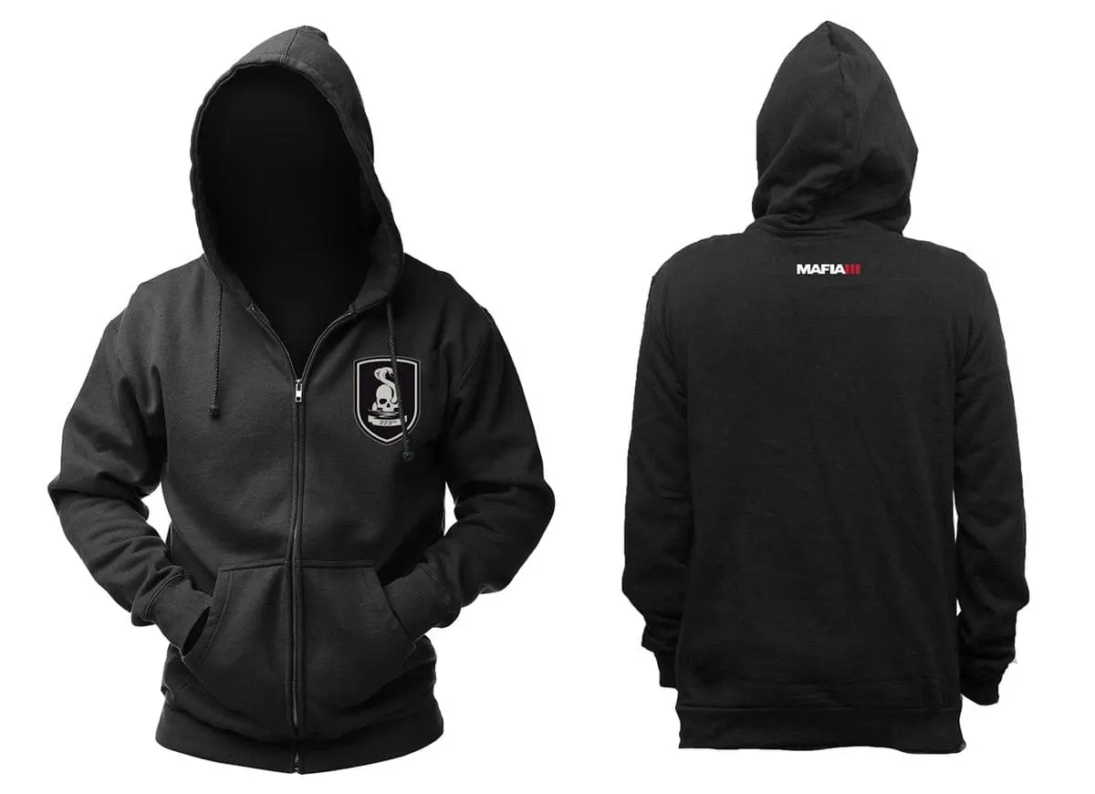 Wear your love of the hit video game Mafia III with this stylish hoodie! Comfy black zip-up hoodie features the emblem of the 223rd from Mafia III as a print on the left chest. The logo of the game can be found printed on the neck. High quality silk screen print, cotton / poly mix for a long lasting fit, even after being washed several times. Men’s sizes. Officially licensed.