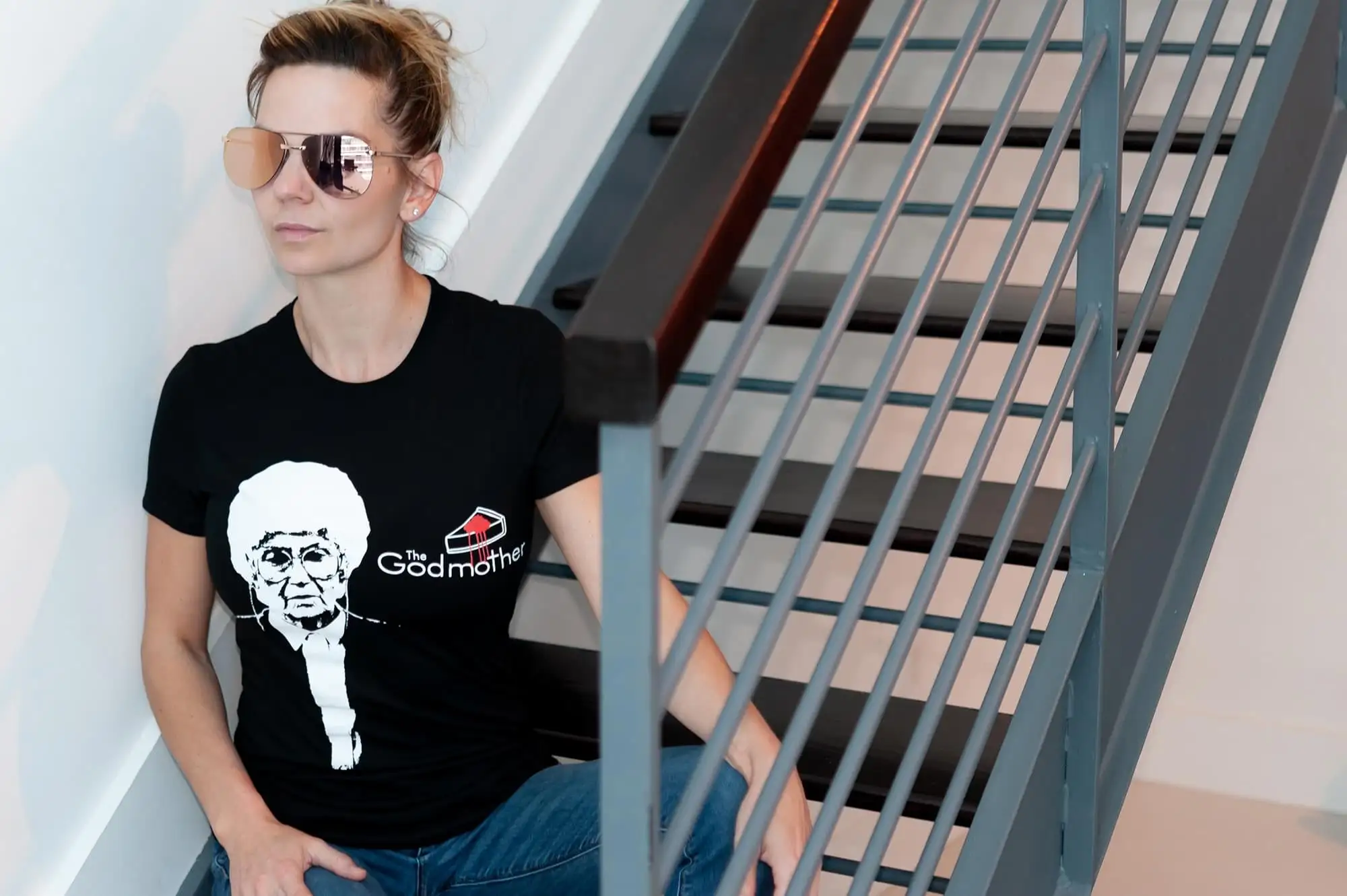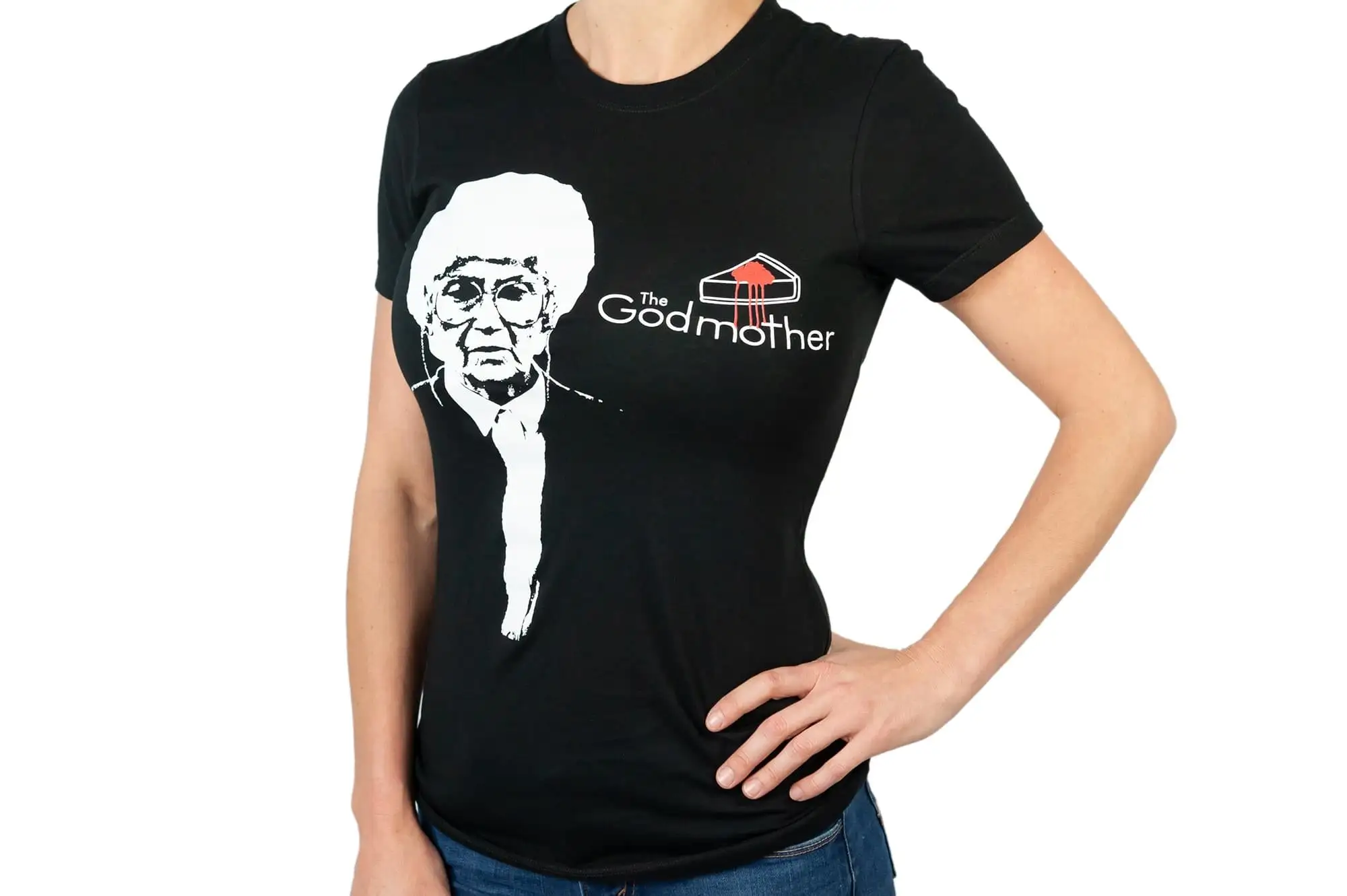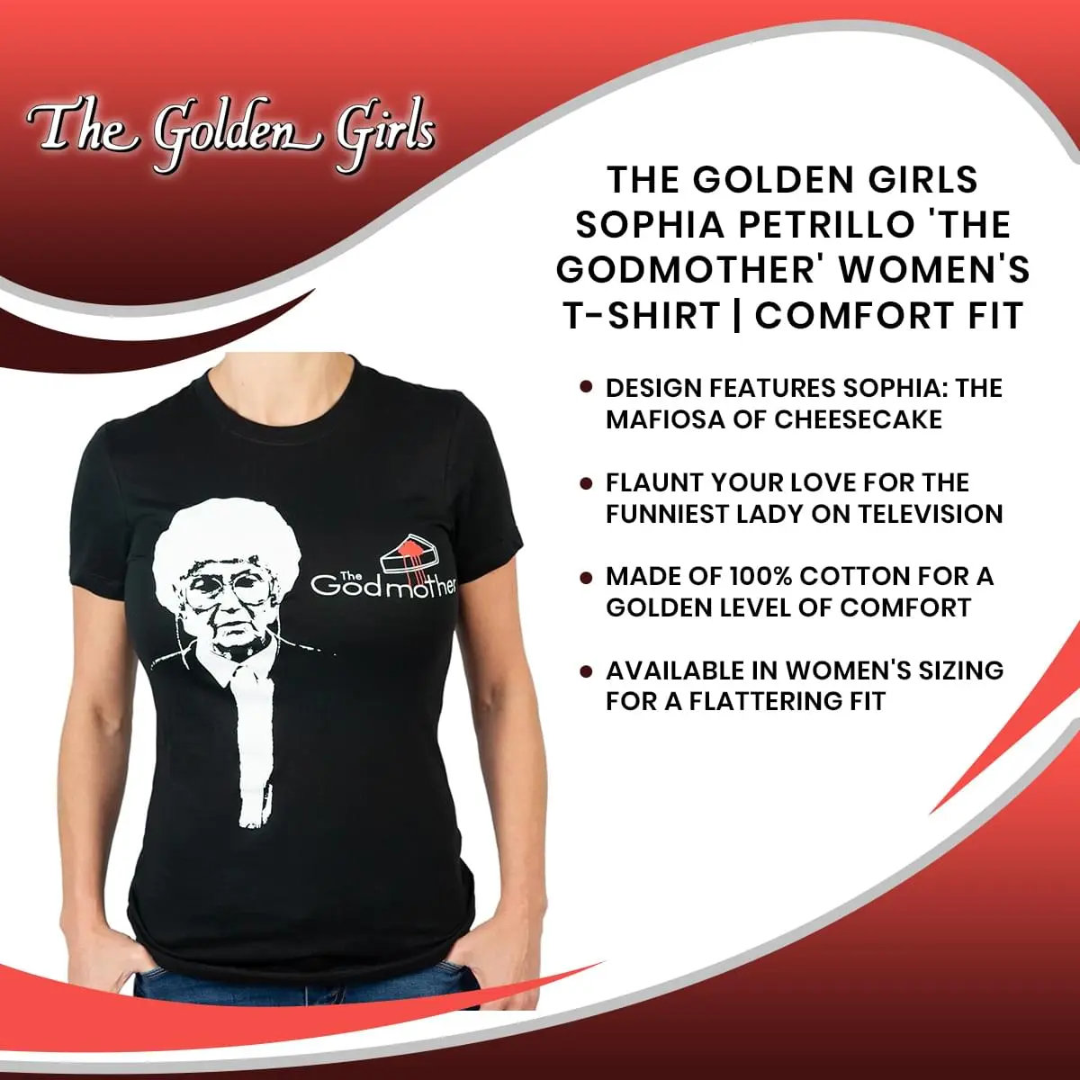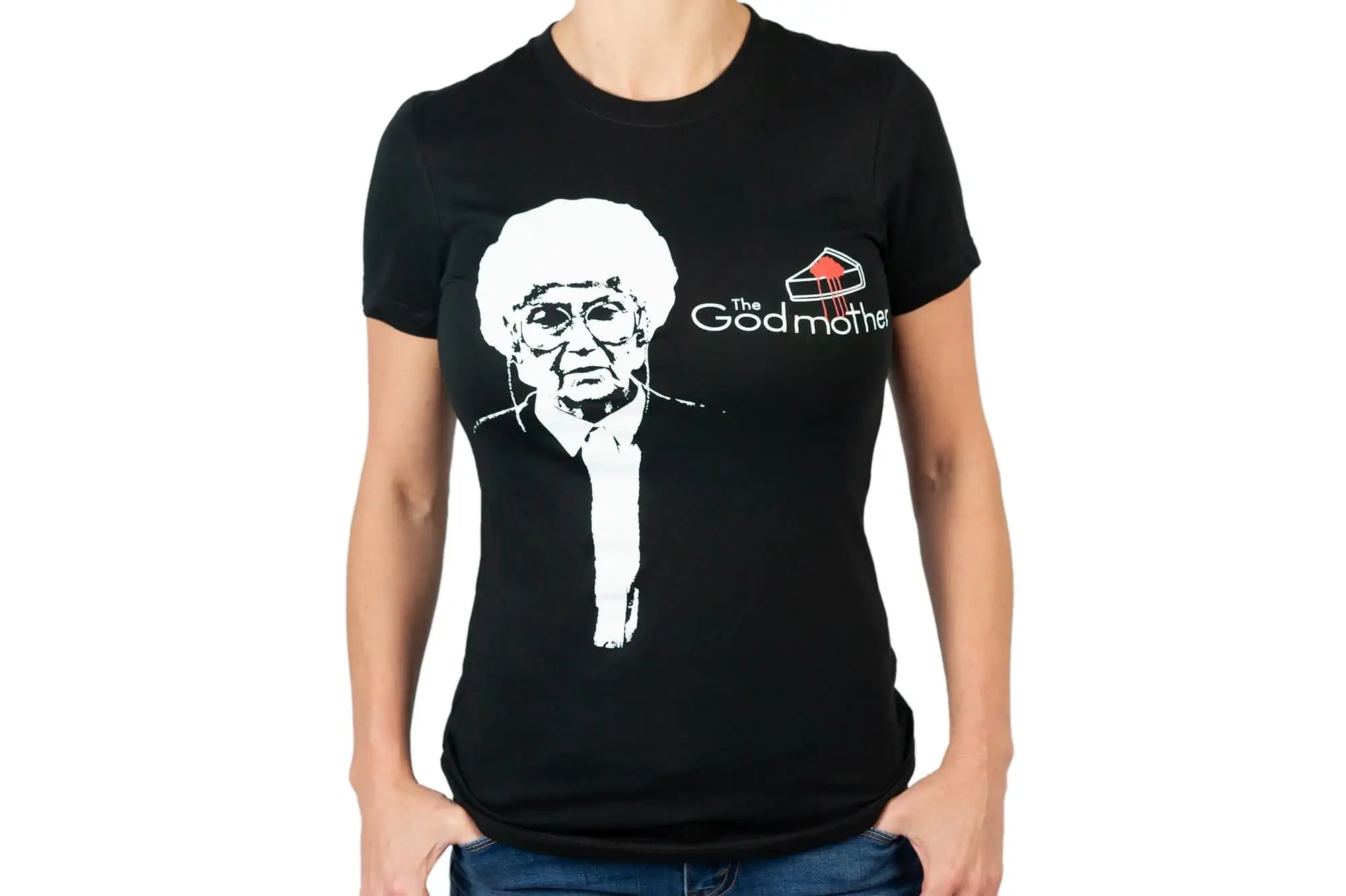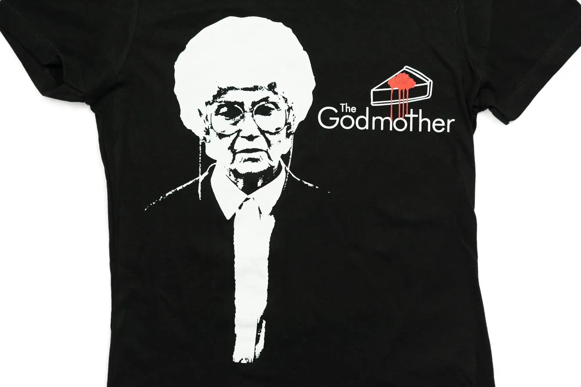 The matriarch of the comedy foursome, Sophia Petrillo is pictured here as the Godmother, a play on words from the hit Godfather films. Featuring the ever-present cheesecake along with some dripping fruit topping, this hilariously menacing shirt is designed for fans who know who the real boss of the house is. Have your cheesecake and it too with this witty t-shirt inspired by quick-witted Sophia Petrillo!