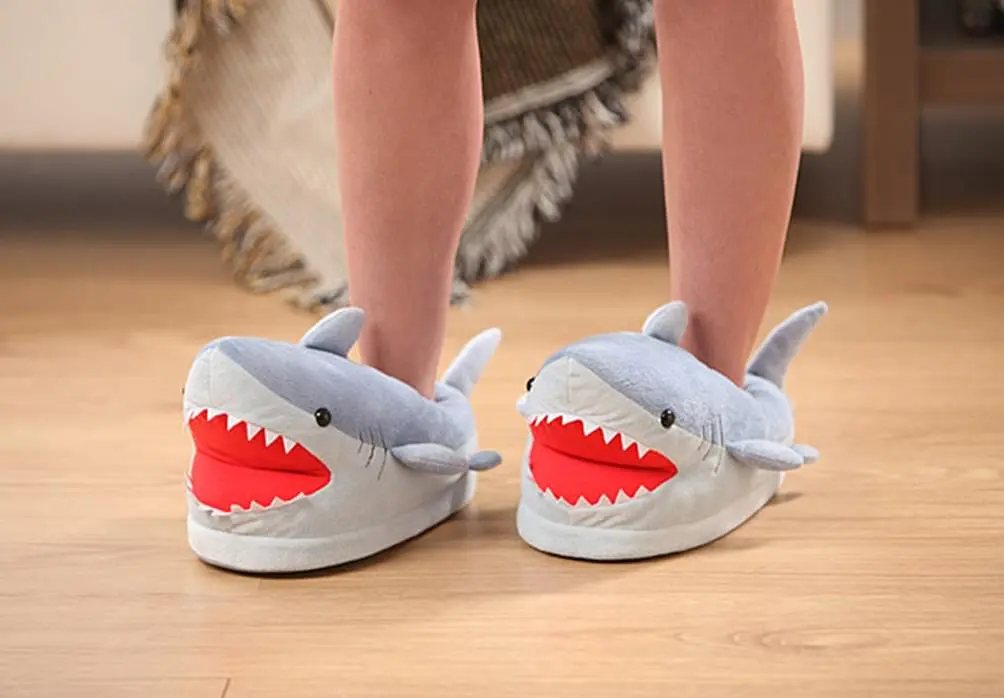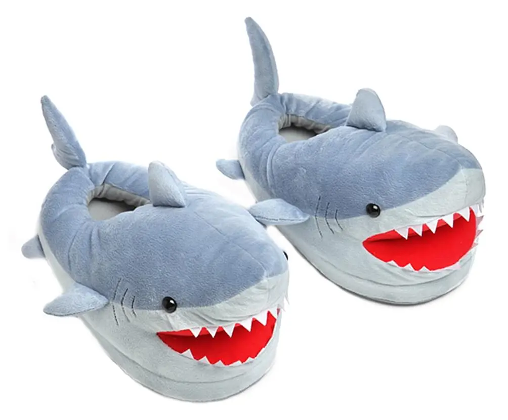 Gonna need a bigger closet! These Chomping Shark Plush Slippers look just like Great White Sharks, and in order to wear them you must slip your foot deep into the sharks’ bellies (accessed via the little known secret hatch behind every shark’s dorsal fin). Will your feet emerge unscathed? Maybe. Will they be cozy and comfortable? Definitely! Made of Polyester fibers and polyurethane foam. Bottom fabric coated with no-slip dots.